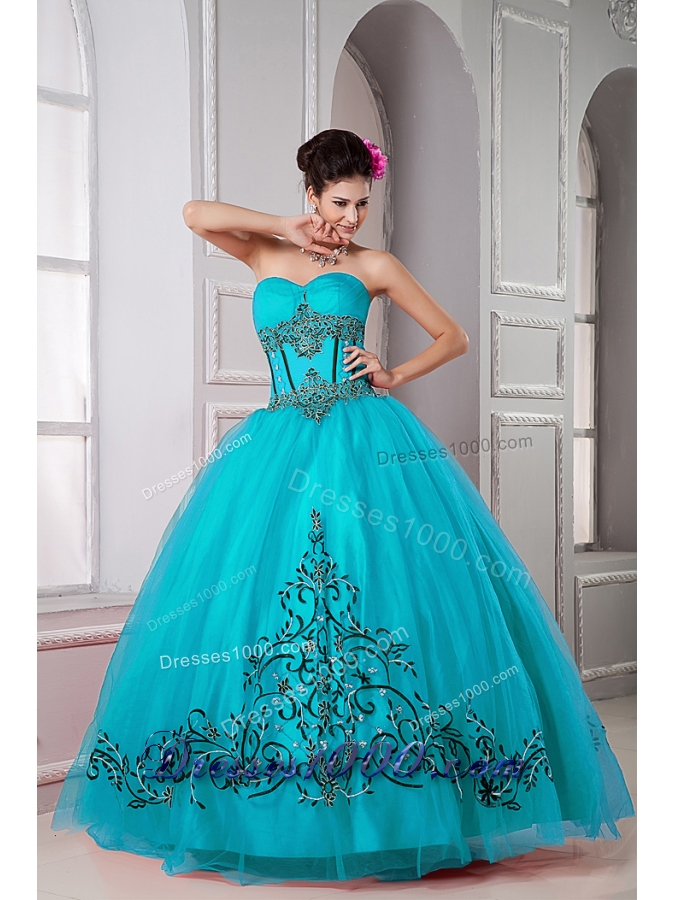Teal Ball Gown Sweetheart Floor-length Tulle Beading Quinceanera Dresss