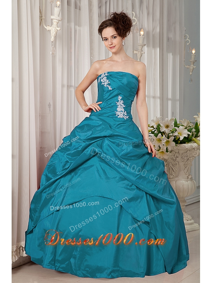 Turquoise Ball Gown Strapless Floor-length Taffeta Appliques Quinceanera Dress