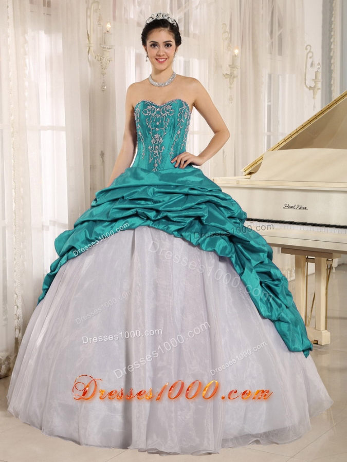Luxurious Teal Quinceanera Dress With Embroidery Sweetheart Pick-ups for 2014