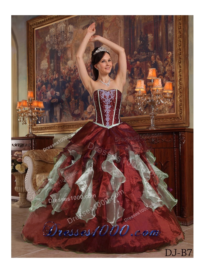 Burgundy Sweetheart Organza Quinceneara Dresses with Beading