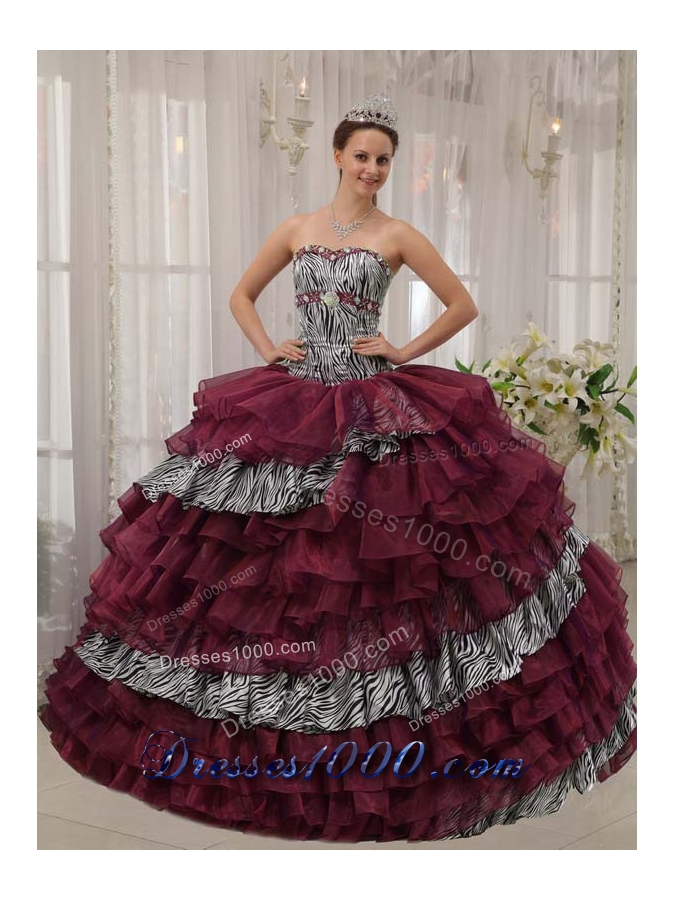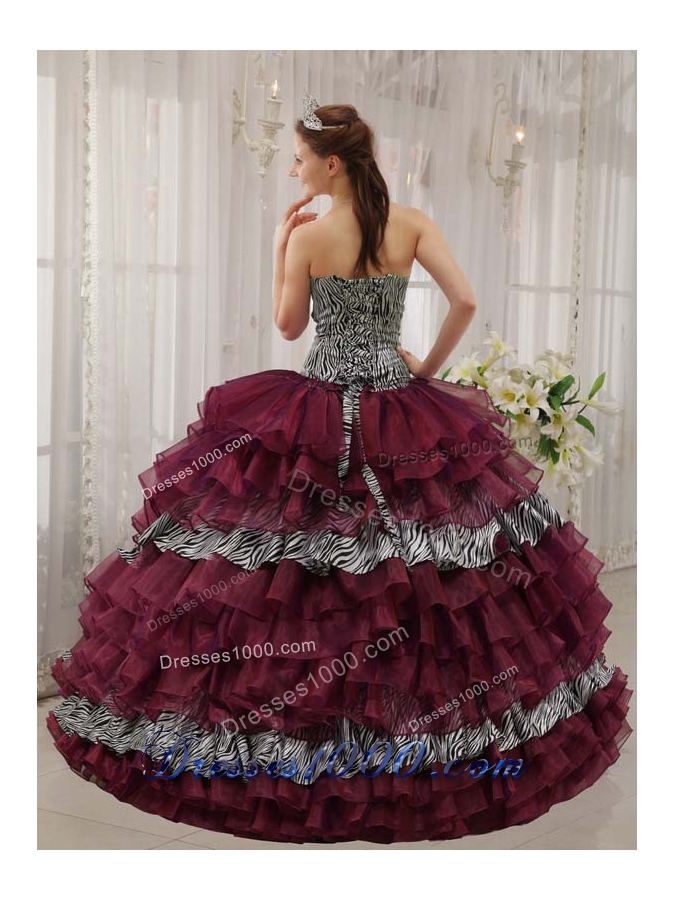 Burgundy Sweetheart Quinceanera Gown Dresses with Beading and Layers