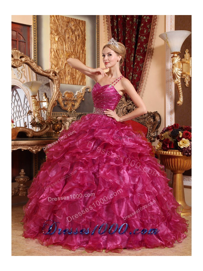 New Style One Shoulder Organza Quinceanera Dresses with Beading and Ruffles