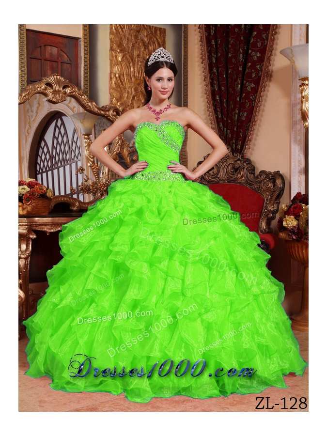 Pretty Sweetheart Beading Puffy Long Quinceanera Dresses in Spring Green