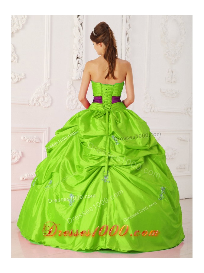 Cheap Spring Green Strapless Beading and Sashes Puffy Quinceanera Dresses
