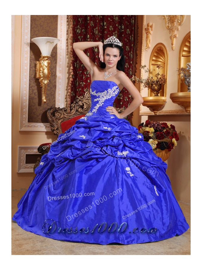 Do you like this blue strapless ball gown dress? It is an instant classic dress.Elegant strapless with princess lines. The upper bodice is accented with flower appliques cluster decorated pick-ups,so elegant! Flirty layers of organza ruffles start form the dropped waist to create a luxury skirt for this eye-catching dress for prom or party.The corset style bodice is finished with a lace up tie back. This ball own is perfec for Prom, Pageant or Quinceanera.