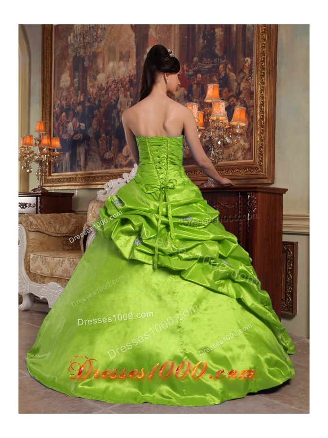 The Spring Green strapless beaded floor length taffeta gown is your perfect choice to attend ball, and party.Fitted bodice design with beaded decoration on the left part of bust makes the gown so beautiful and sexy that you can gain more attention and no matter what you attend, you will become the spotlight. Besides,the bubble cover in assymetrical cut adorned by the scattered crystals adds its elegance and decency,and the floor length skirt makes the ball gown much more cute and lovely as if you are a princess in a fairy tale.