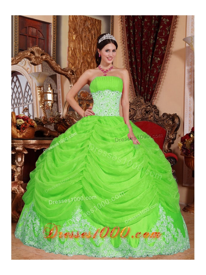 Puffy Strapless Long Beading Quinceanera Gown with Spring Green