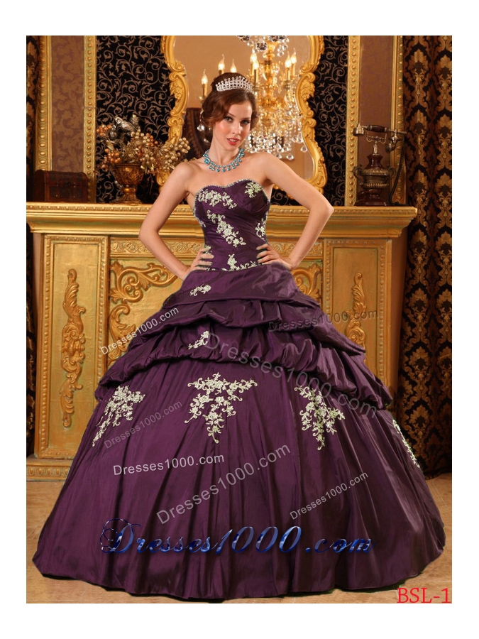 2014 Fashionable Dark Purple Puffy Sweetheart Beading and Appliques Quinceanera Dresses