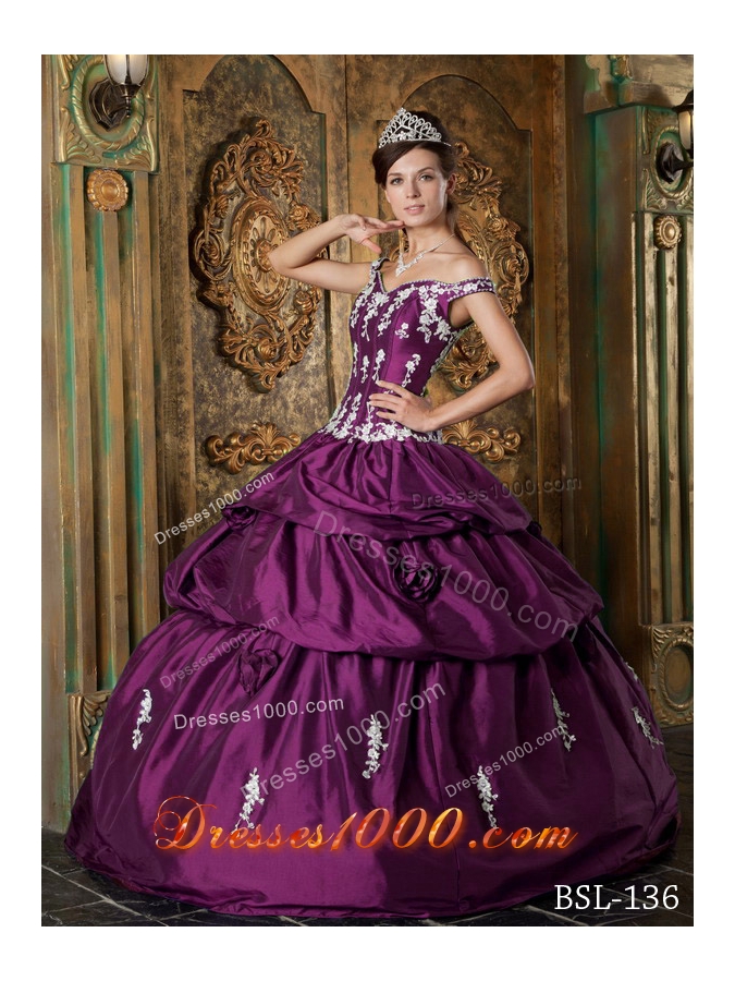 Perfect Dark Purple Off The Shoulder 2014 Appliques Quinceanera Dresses with Pick-ups