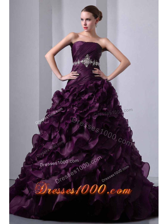 2014 Beautiful Princess Strapless Brush Train Beading and Ruching Quinceanea Dresses
