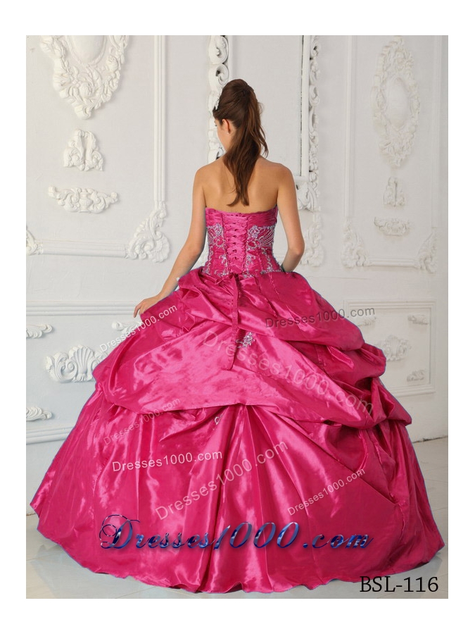 2014 Gorgeous Coral Red Puffy Sweetheart Appliques Quinceanera Dress with Pick-ups