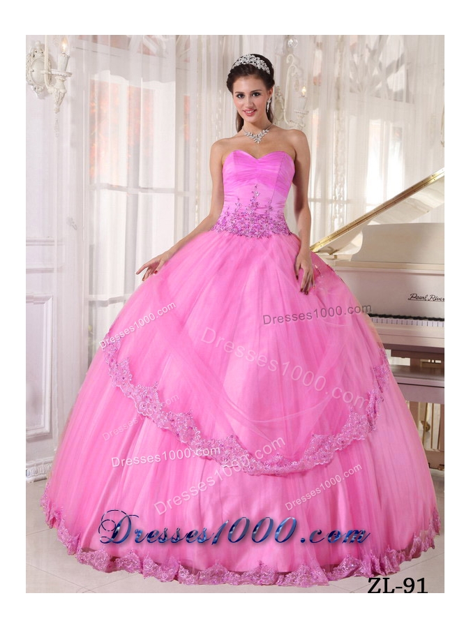 Rose Pink Sweetheart Puffy Sweet 16 Dresses with Appliques