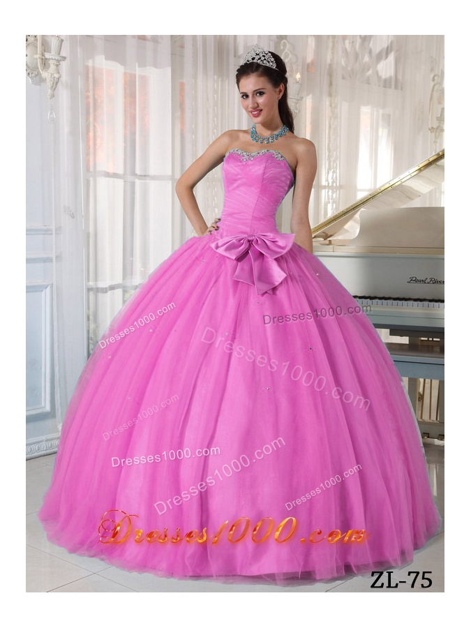 Rose Pink Sweetheart Quinceanera Dresses with Beading and Bowknot