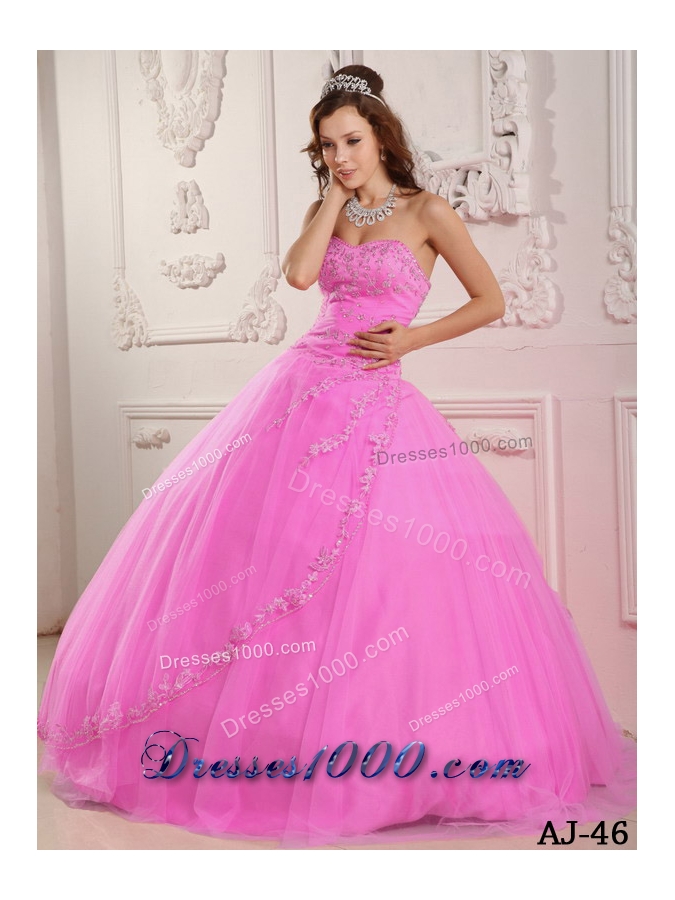 Classical Sweetheart Rose Pink Quinceneara Dresses with Appliques