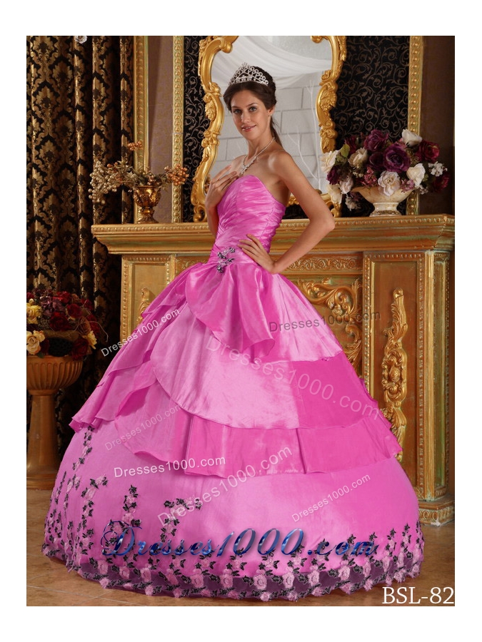 Rose Pink Princess Sweetheart Quincenera Dresses with Appliques