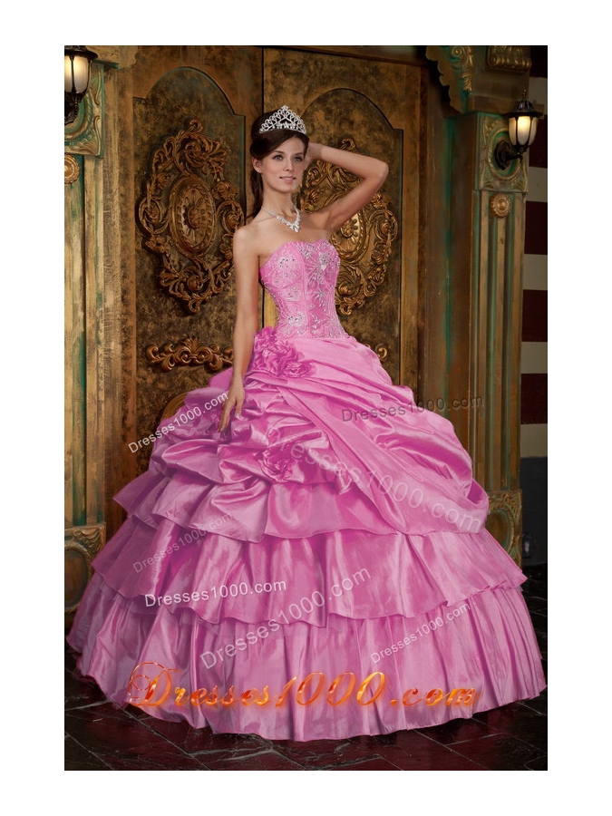 Rose Pink Strapless Quinceanera Gowns with Beading and Pick-ups