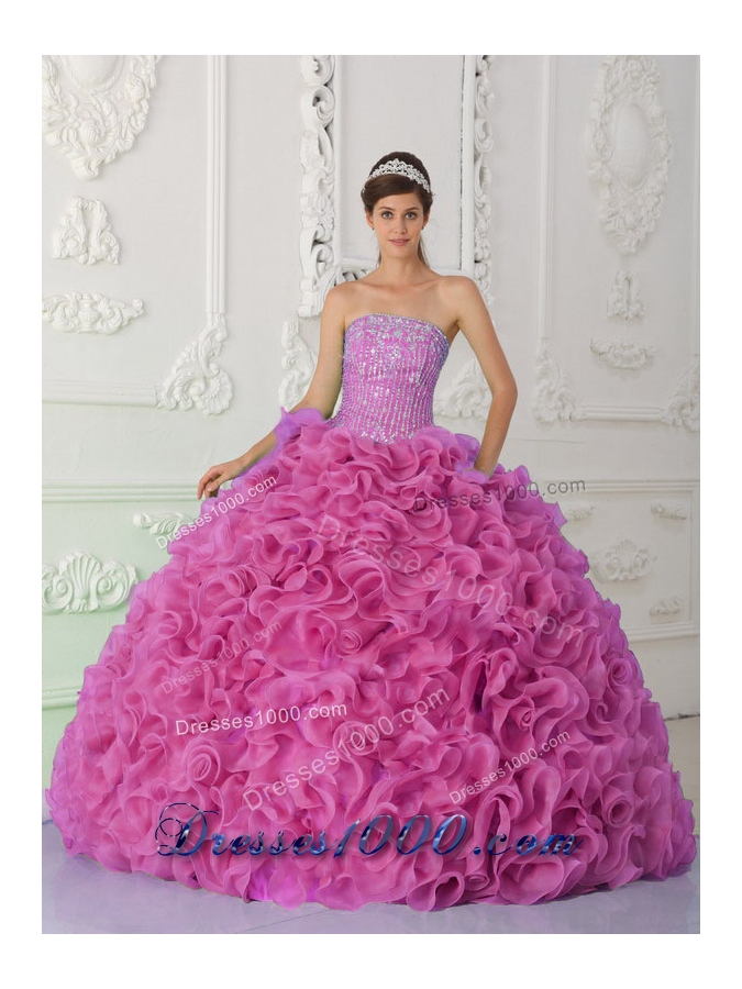 Ball Gown Strapless Organza Quinceanera Gowns with Ruffles and Beading