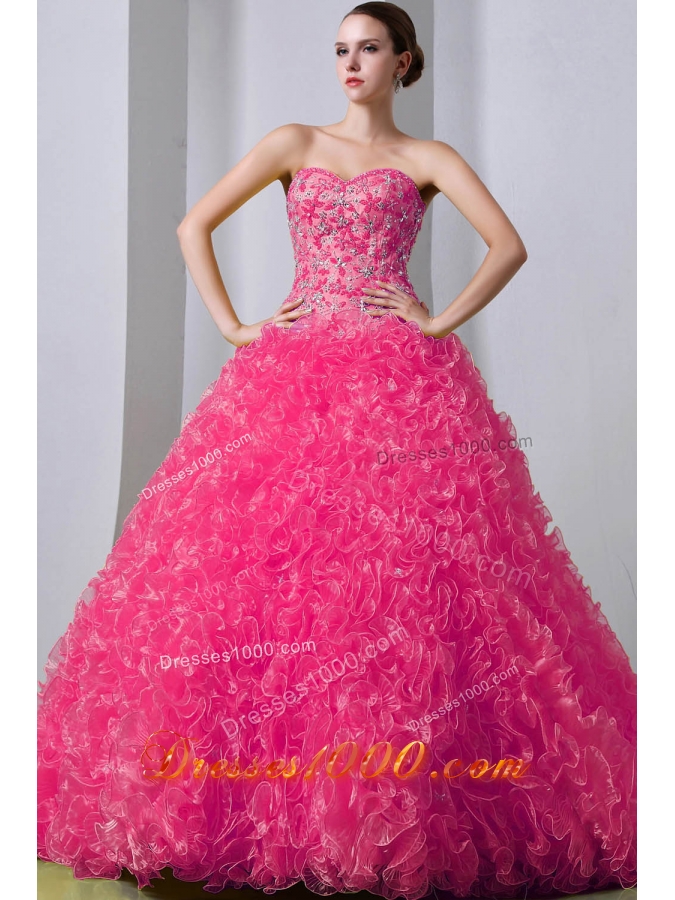 2014 Pretty Beading Quinceanea Dress in Hot Pink Princess withRuffles