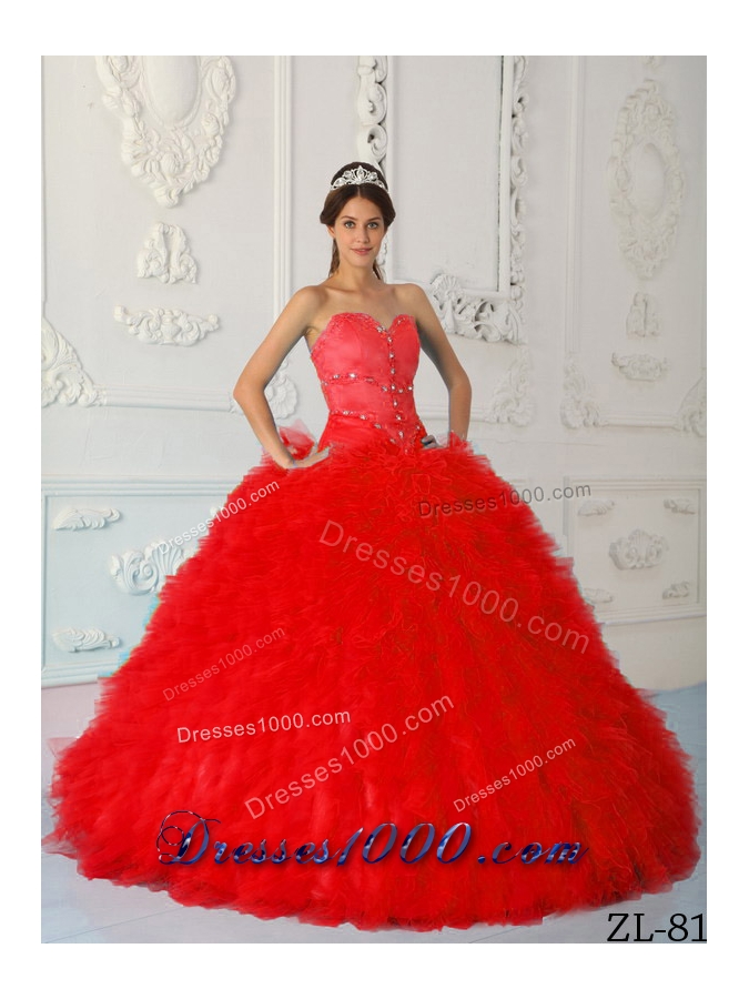 Exquisite Red Puffy Sweetheart Beading Quinceanera Dresses for 2014