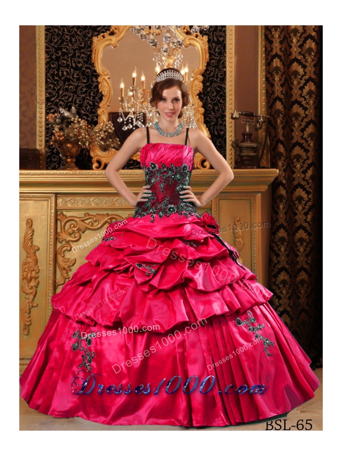 Exclusive Red Puffy Straps Pick-ups and Appliques Quinceanera Dress for 2014