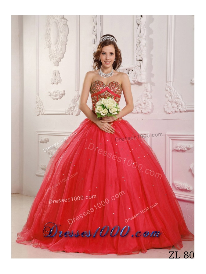 2014 Red Princess Sweetheart Beading Decorate for Quinceanera Dresses