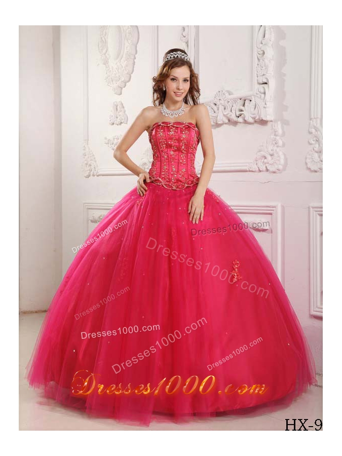Elegant Puffy Strapless 2014 Beading Hot Pink Sweet 15 Dresses with Appliques
