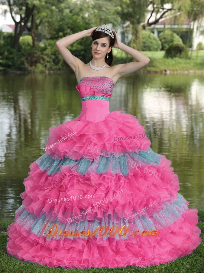 Beaded Decorate Bust Organza Strapless New Style Sweet 16 Dresses with Tiers