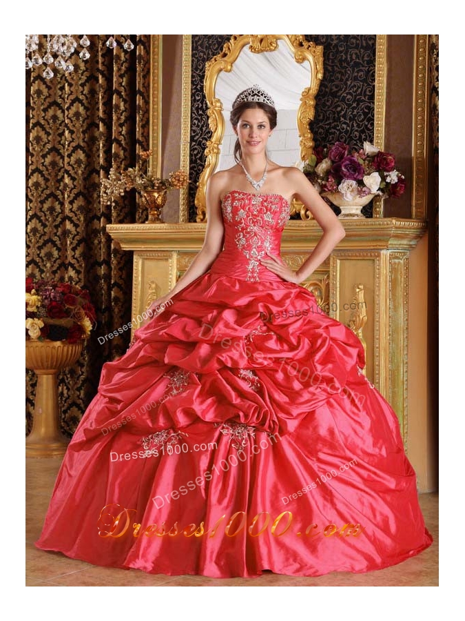 2014 Red Puffy Strapless Quinceanera Dresses with Appliques