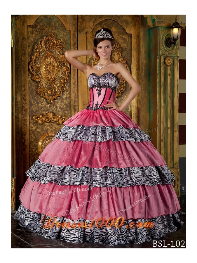 Luxurious Sweetheart Zebra Ruffled Layers for 2014 Quinceanera Dresses