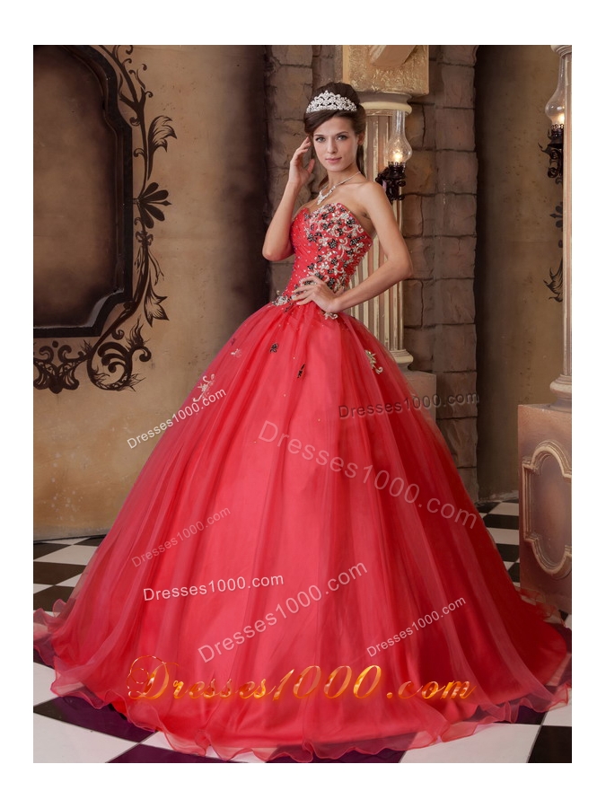 New Style Red A-line Sweetheart Appliques 2014 Quinceanera Dresses