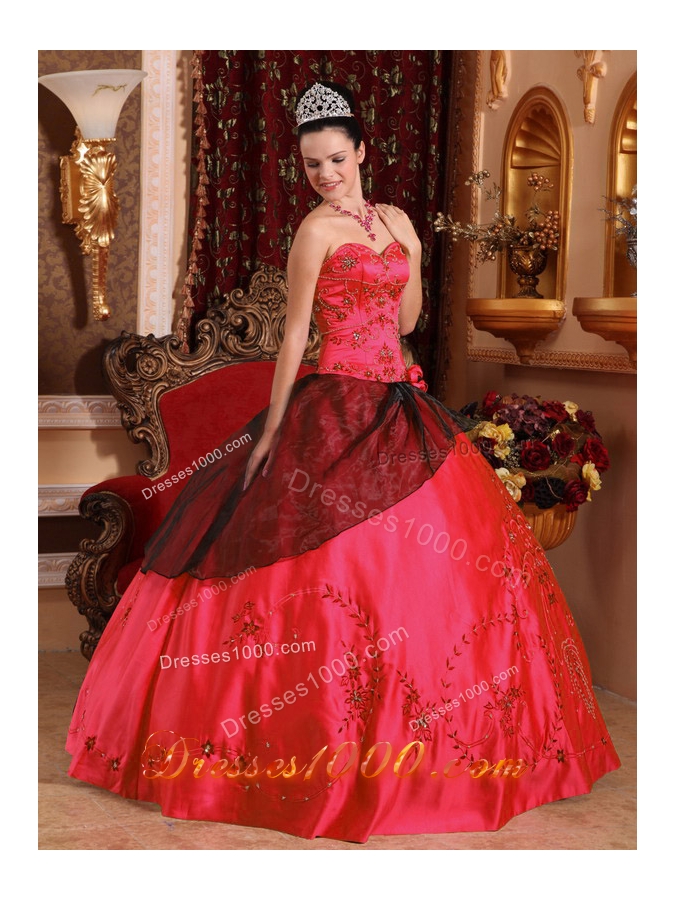 Red Puffy Sweetheart 2014 Embroidery with Beading Quinceanera Dresses