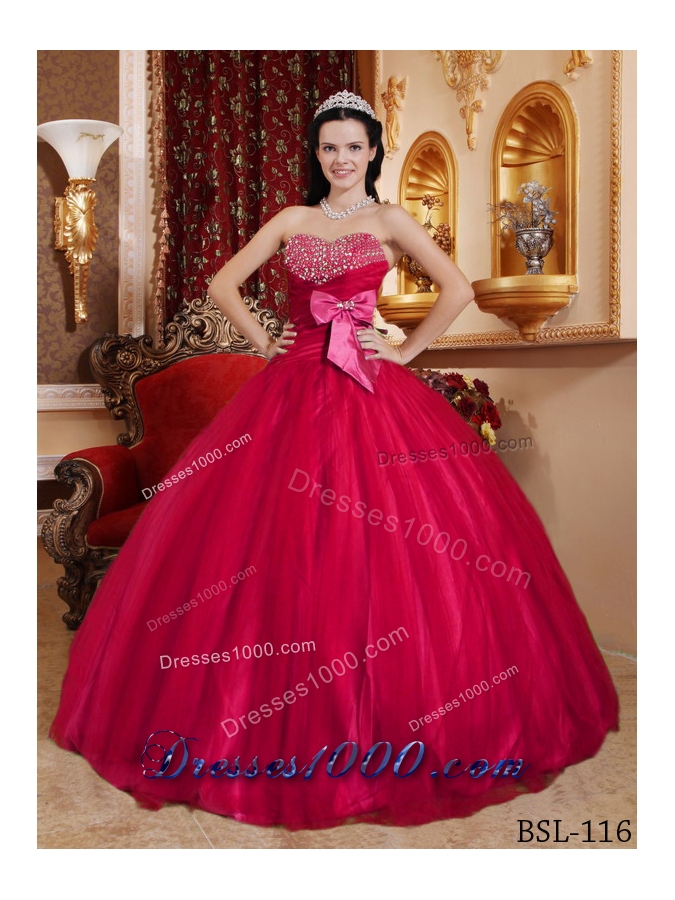 2014 New Style Red Puffy Sweetheart Beading Quinceanera Dresses with Bowknot