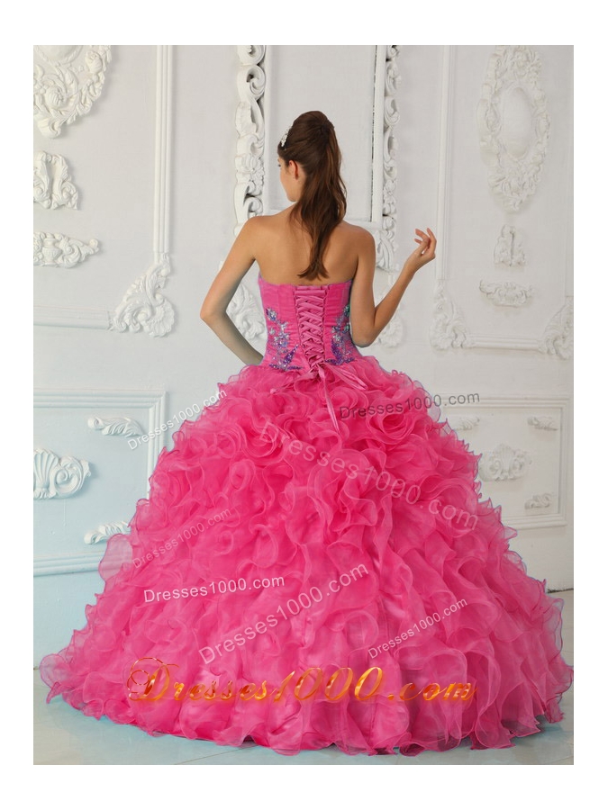 Exquisite Hot Pink Quinceanera Gowns with Ruffles and Embroidery