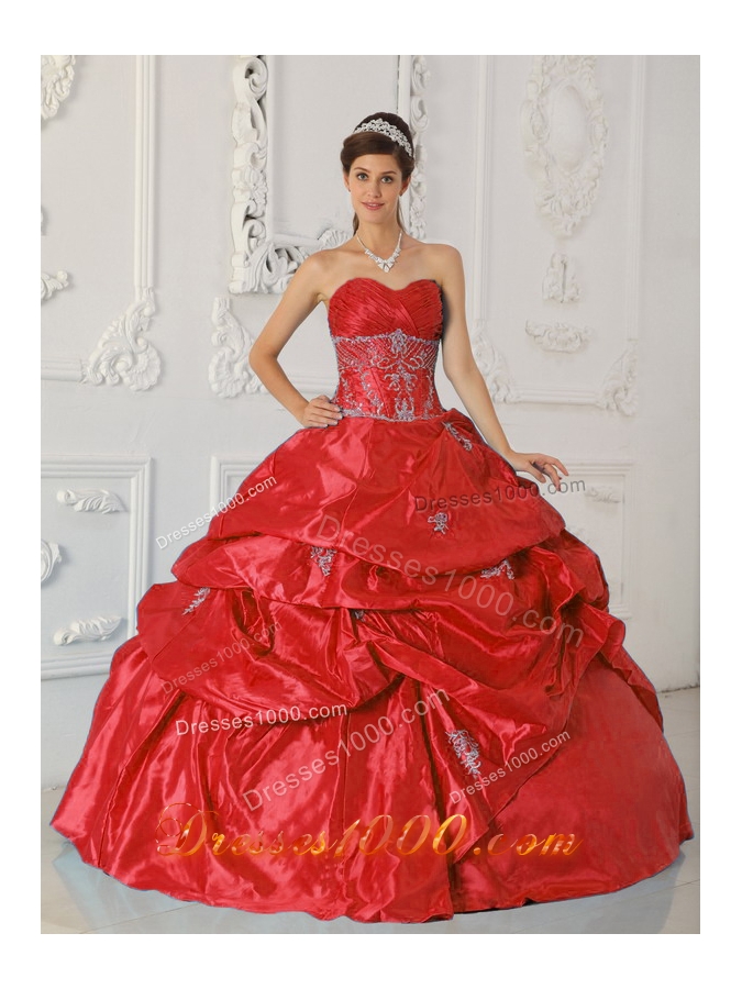 Brand New Puffy Red Sweetheart 2014 Spring Appliques Quinceanera Dresses