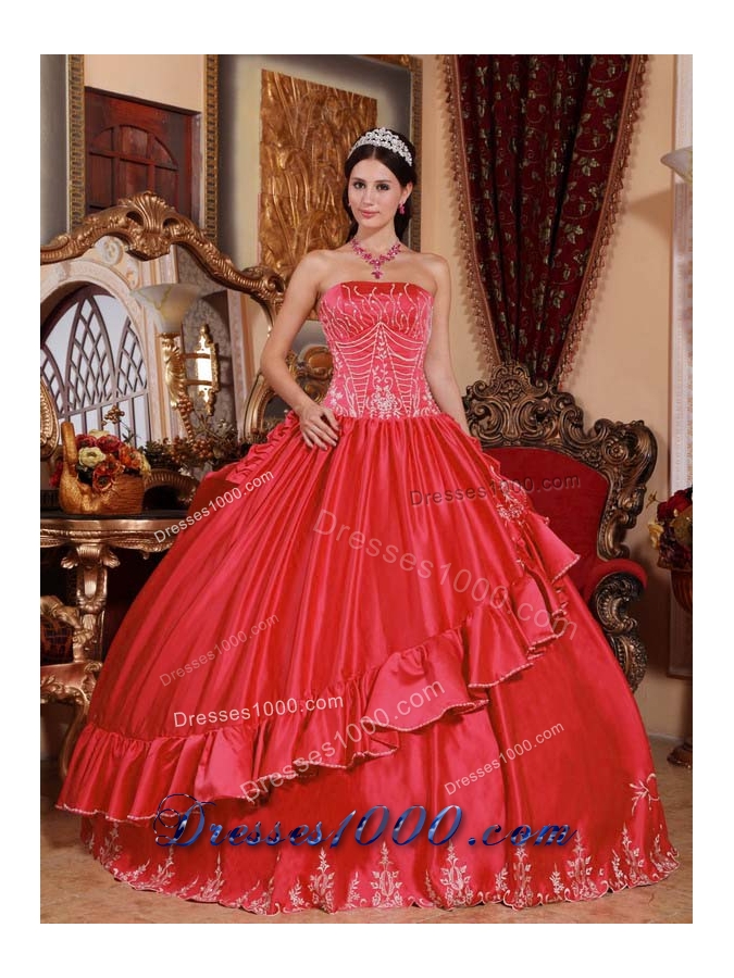 Brand New Red Puffy Strapless 2014 Embroidery Quinceanera Dresses