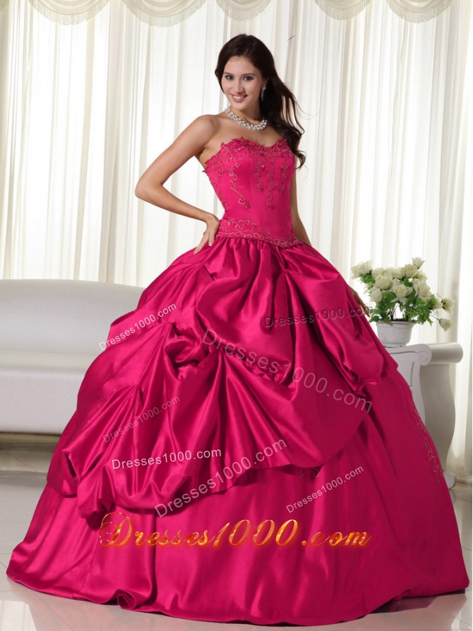 Lovely Red Puffy Sweetheart Embroidery Quinceanera Dresses for 2014