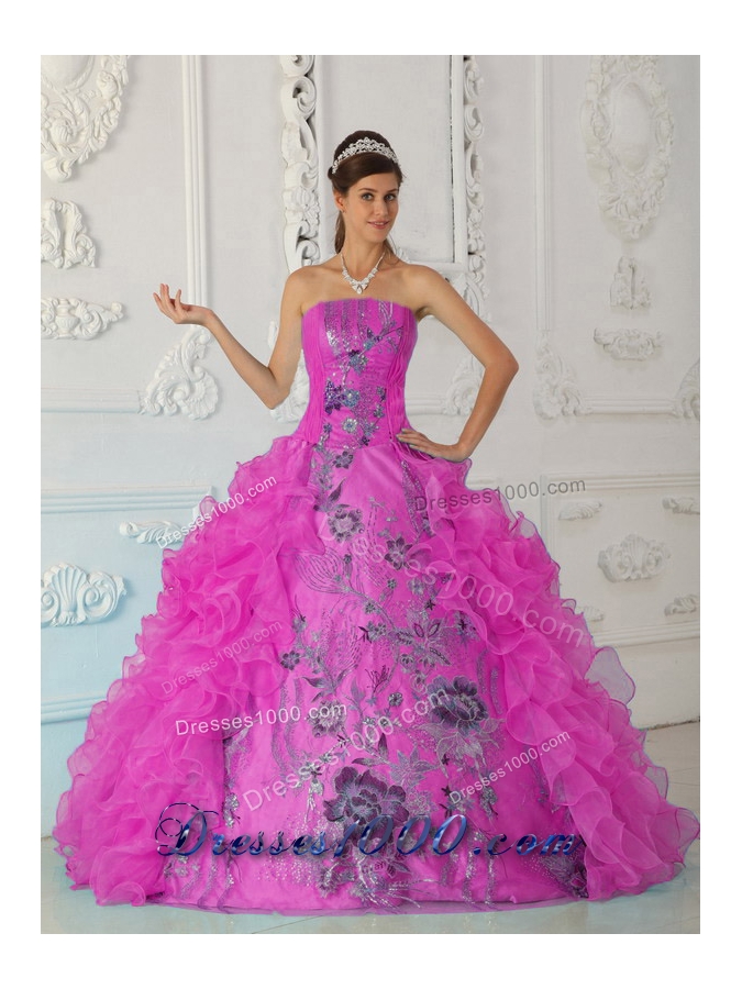 Exquisite Ball Gown Strapless Quinceanera Dress with Embroidery