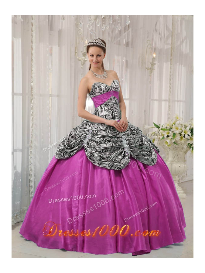 Hot Pink Ball Gown Sweetheart Quinceanera Dress with Taffeta Zebra Beading