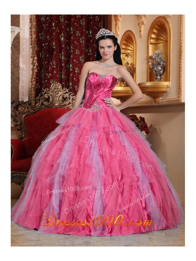 Coral Red Ball Gown Sweetheart Quinceanera Dress with Tulle Beading