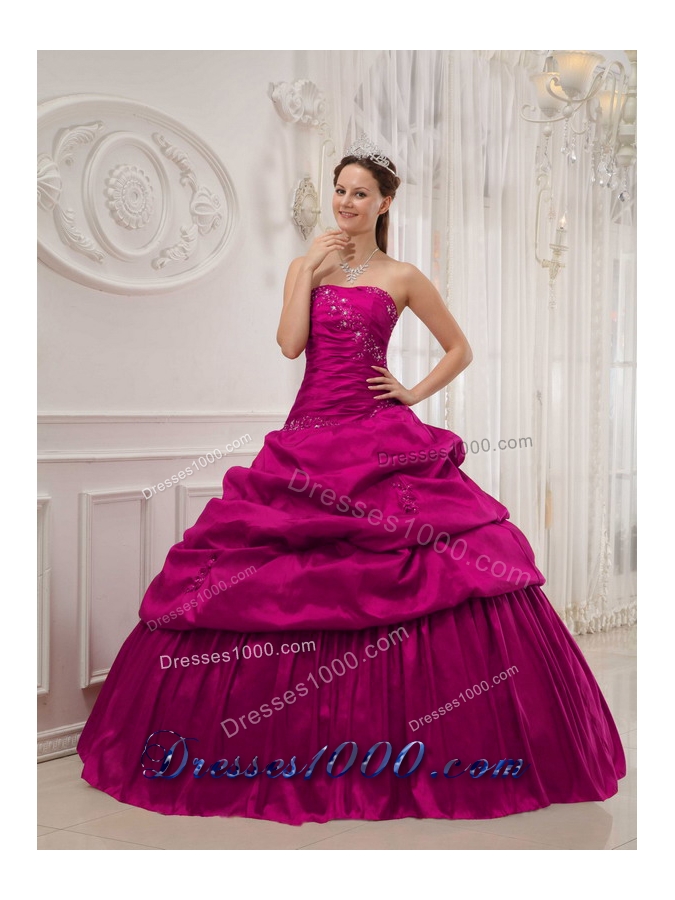 Fuchsia Ball Gown Strapless Quinceanera Dress with Taffeta Ruffles