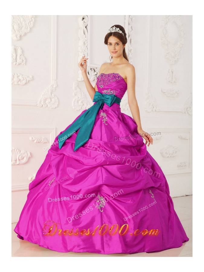 Fuchsia Ball Gown Strapless Quinceanera Dress with Taffeta Beading