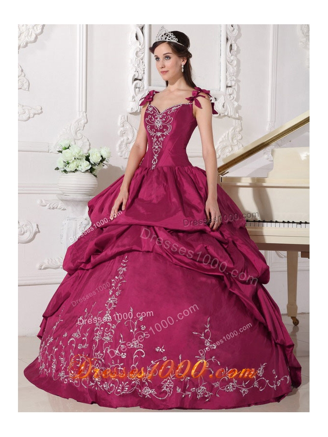 Red Ball Gown Straps Quinceanera Dress with Taffeta Embroidery