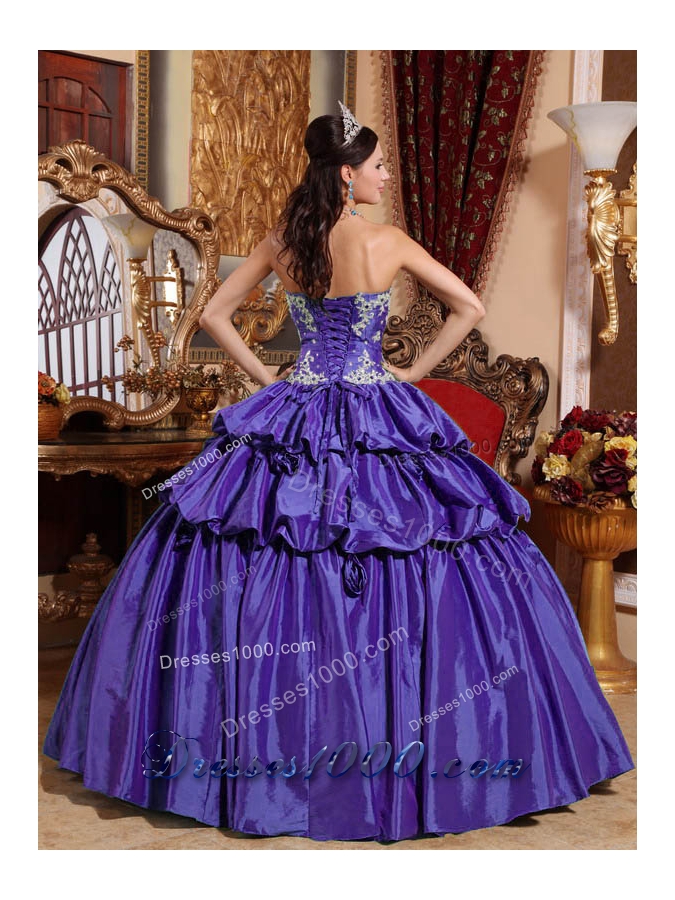 Purple Sweetheart Taffeta Quinceanera Gowns with Appliques and Pick-ups