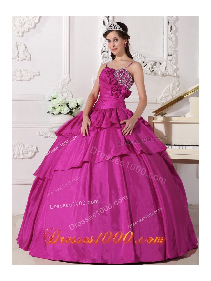 Get a celebrity look for less with this stunning fuchsia ball gown dress. Soft and sleek taffeta will give your skin intimate care and look beautiful. Perfect for homecoming, prom, or by spaghetti straps design with dazzling beadwork and flowered bodice with romantic draped skirt. The floor length skirt flares out from the dropped waist to give this ball gown a special look for prom. This special evening ball gown dress is sure to impress at your next prom or special occasion party. You'll be the belle of the ball in this glittering gown.