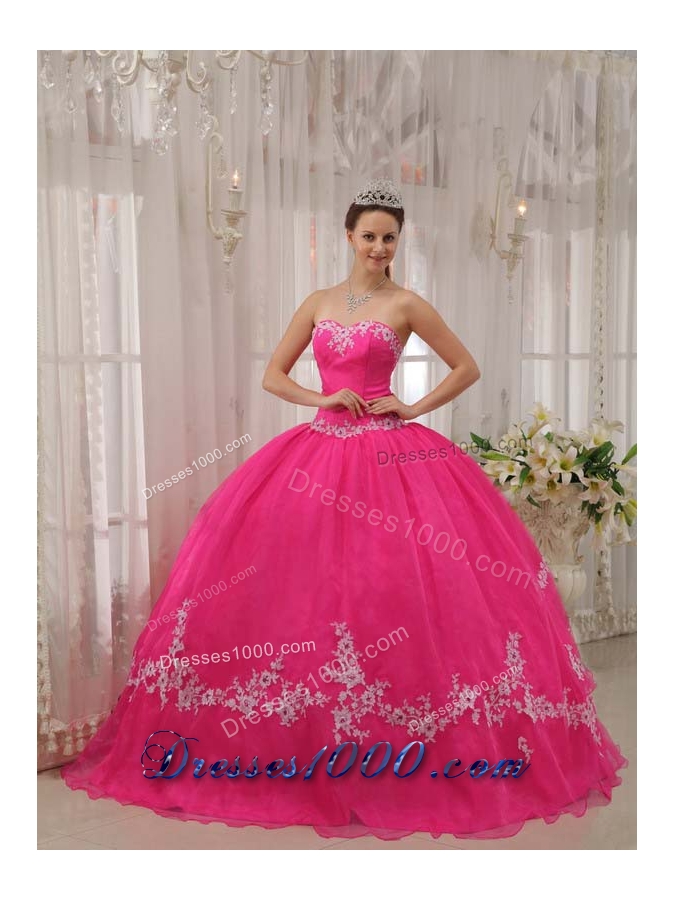 2014 Discount Hot Pink Ball Gown Sweetheart Appliques Quinceanera Gowns