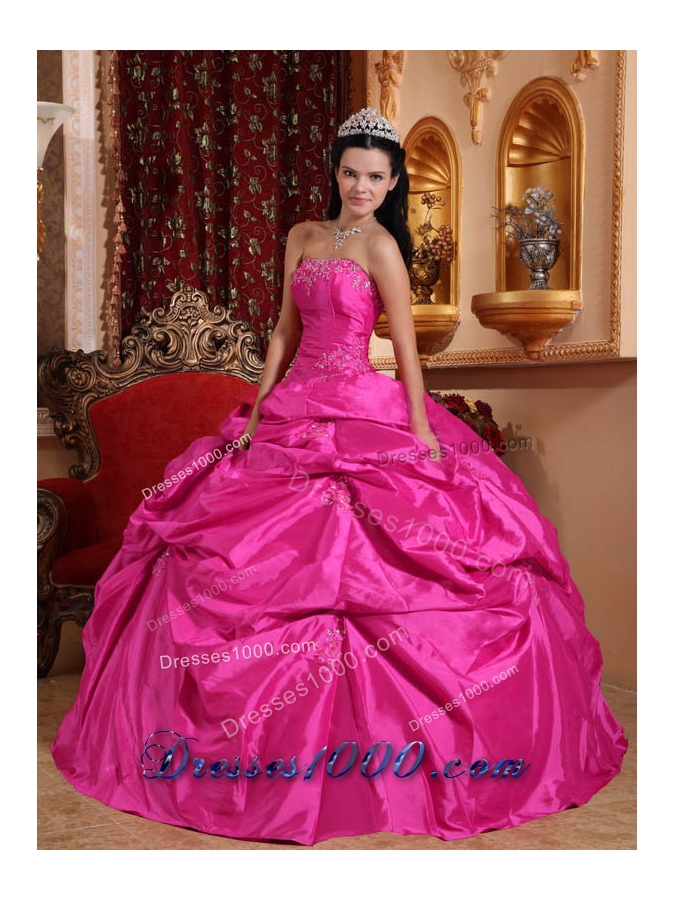2014 Spring Hot Pink Ball Gown Strapless Quinceanera Dress with Taffeta Beading
