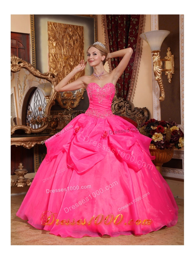 Hot Pink Ball Gown Appliques Quinceanera Gowns with Sweetheart
