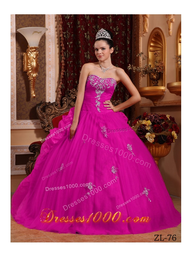 Fuchsia Ball Gown Sweetheart Quinceanera Dress with Organza Appliques