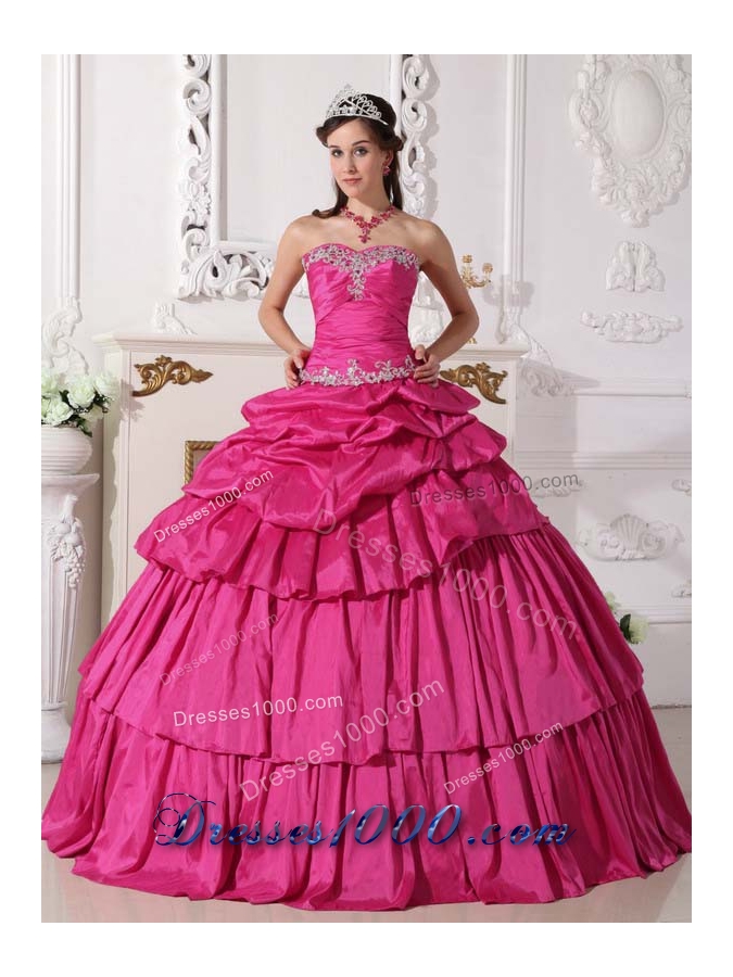 2014 Spring Hot Pink Ball Gown Sweetheart Quinceanera Dress with Taffeta Beading