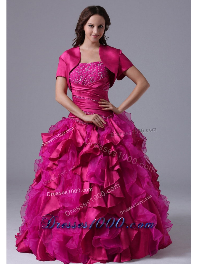 Ball Gown Fuchsia Quinceanera Dress with Ruffles Beaded Decorate Bust
